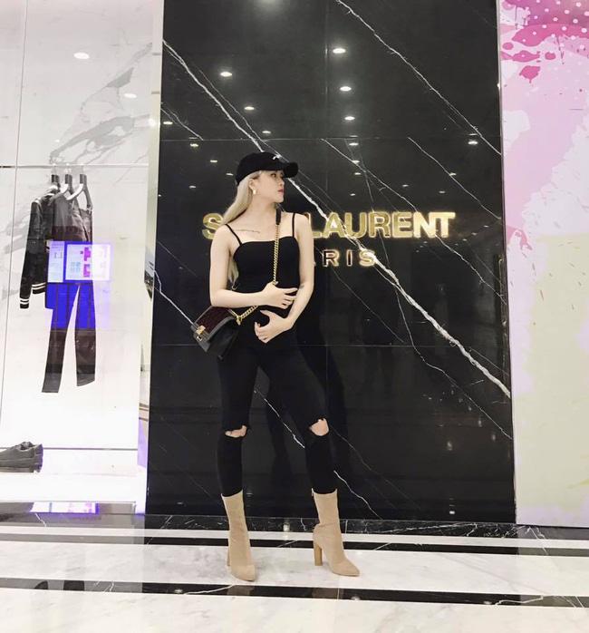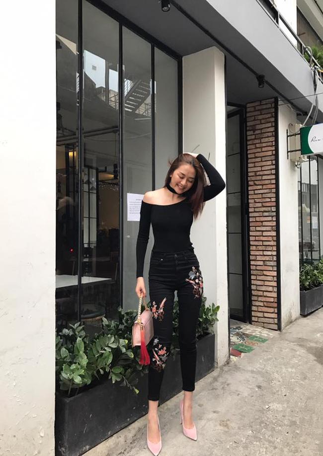 Thiều Bảo Trâm có phần quyến rũ và cá tính hơn chị, tuần này cô nàng khoe dáng gợi cảm với áo hai dây mix cùng quần jeans rách.