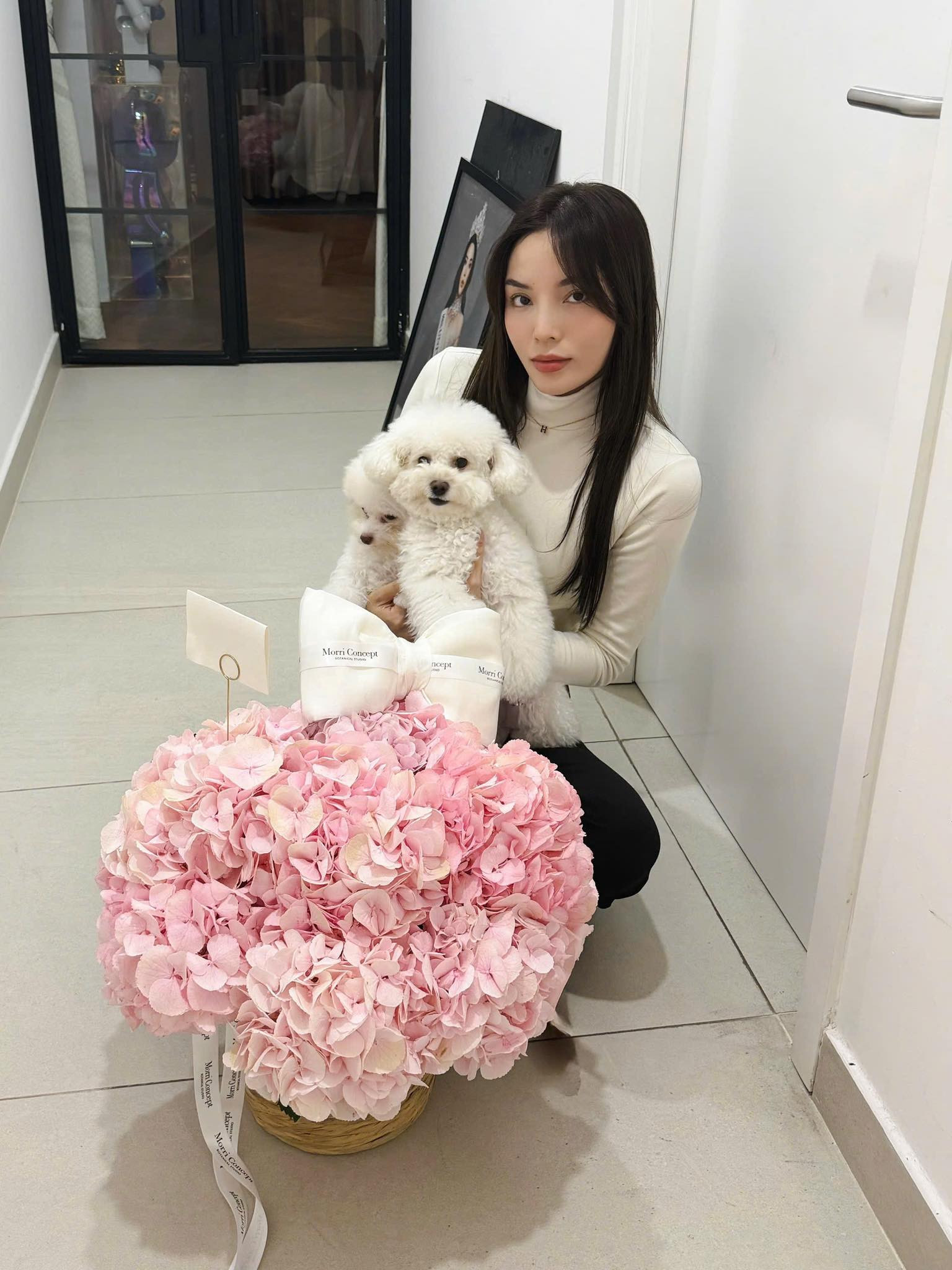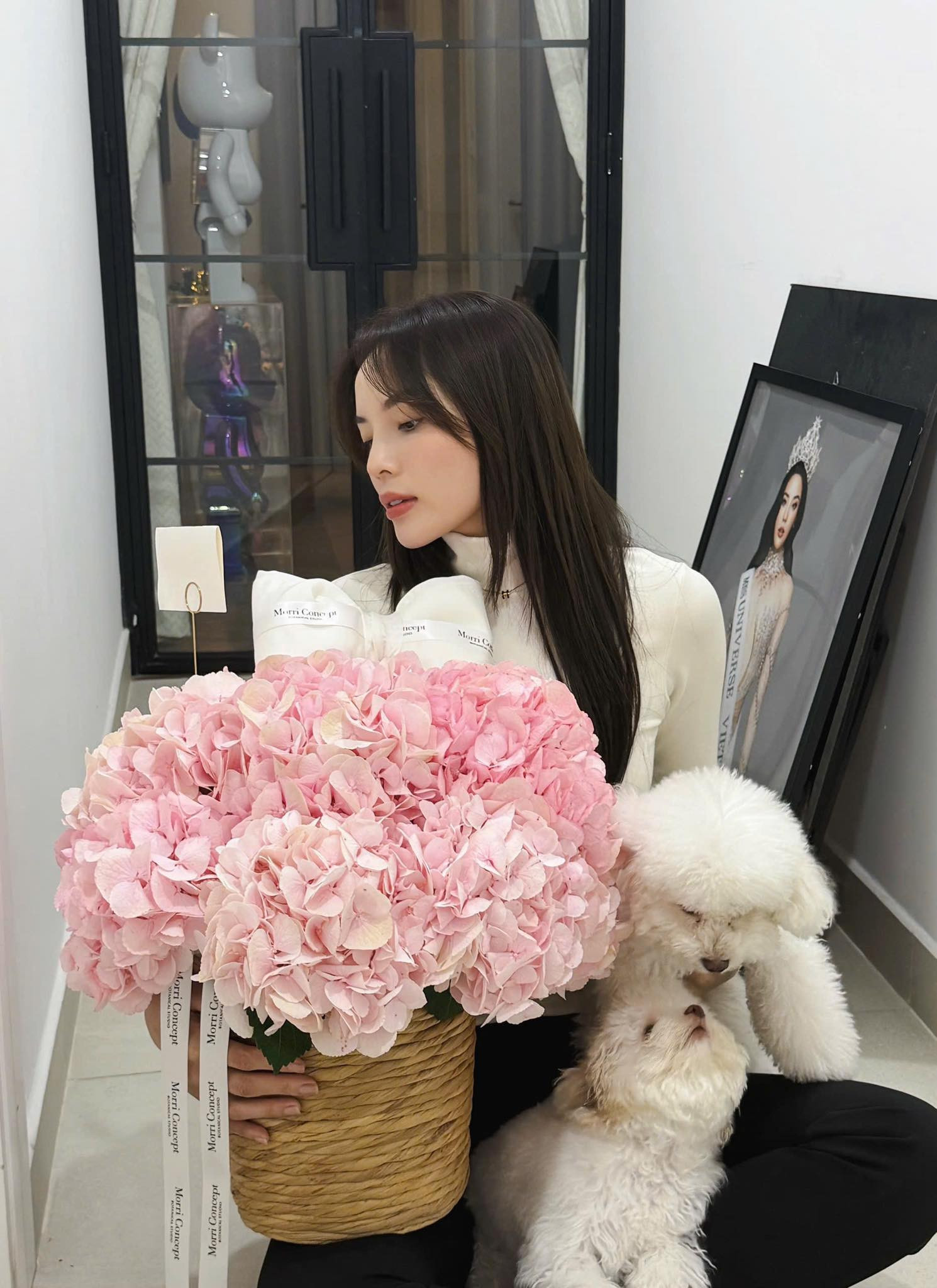 Theo đó, nàng hậu viết: "20/10 của bé hihi. Cảm ơn bó hoa xinh xắn của người tặng nha."