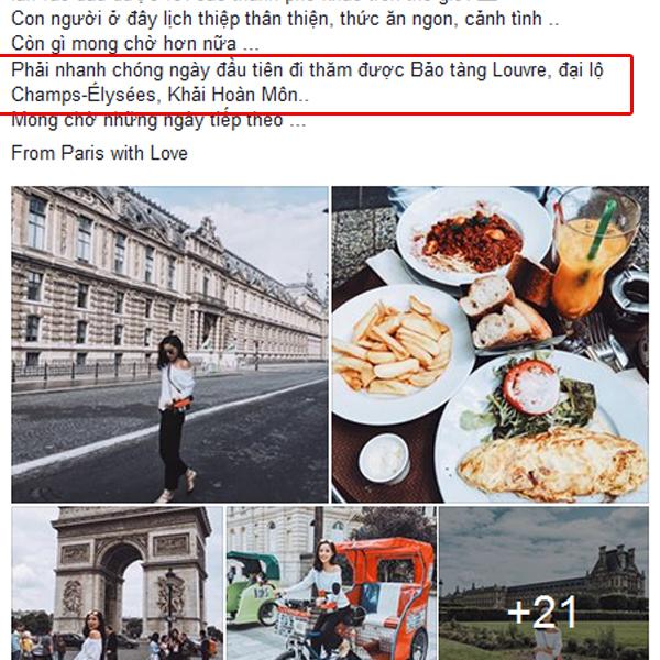 Đang tự thưởng cho mình chuyến du lịch tại Pháp, Kỳ Duyên hân hoan chia sẻ hình ảnh kỷ niệm những nơi mình đến với người hâm mộ quê nhà. Sau khi Kỳ Duyên đăng tải ít giờ, trên trang cá nhân của mình bạn trai cô - Tạ Công Sơn cũng lưu lại hình ảnh nơi mình đã đặt chân khám phá tại Pháp.