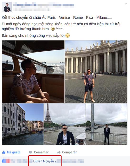 Chia sẻ ảnh kỷ niệm của Công Sơn trong chuyến du lịch và nhận được lượt like thích thú của Kỳ Duyên: Kết thúc chuyến đi châu Âu Paris - Venice - Rome - Pisa - Milano..... Đi một ngày đàng học một sàng khôn, còn trẻ nếu có điều kiện thì cứ trải nghiệm để trưởng thành hơn. Sẵn sàng cho những công việc sắp tới.