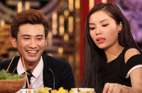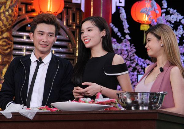 Được Trường Giang khen xinh đẹp, cao ráo, Kỳ Duyên 'đính chính' rằng Chí Thiện mới là người cao nhất trong các khách mời. Cô còn đưa tay sờ môi chàng ca sĩ khiến