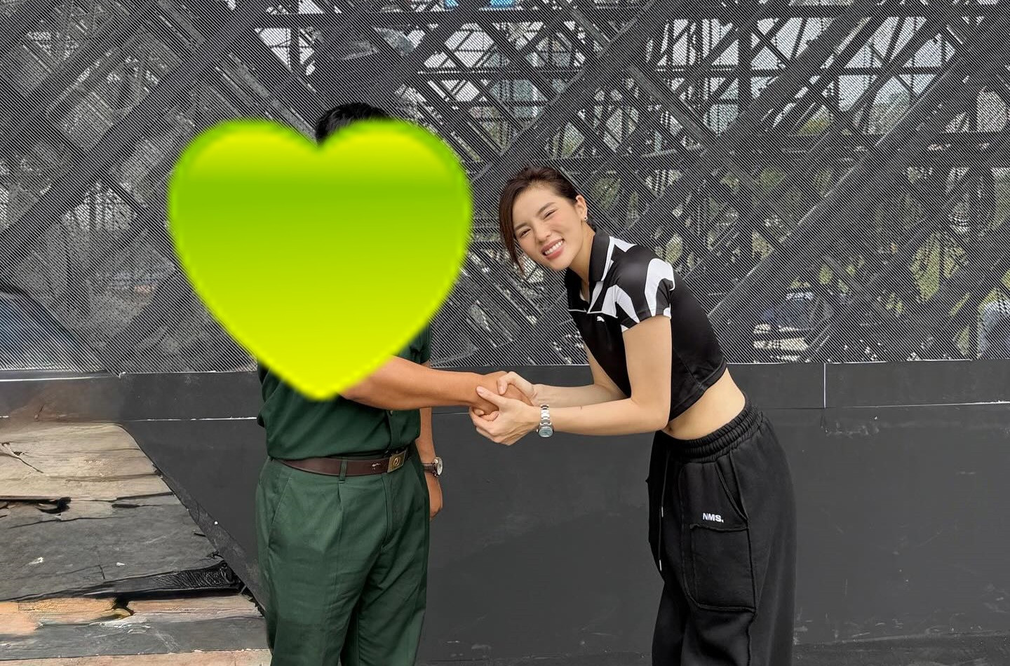 Thiên Ân quàng vai qua cổ Kỳ Duyên và đàn chị cũng nắm tay thân mật. Thời gian qua, cặp đôi liên tục vướng nghi vấn hẹn hò đồng giới.