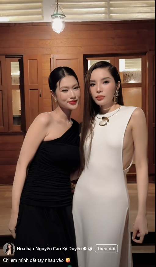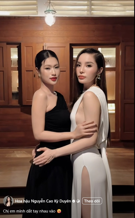 Ngoài ra, Kỳ Duyên còn được dịp bung xõa clip cả hai khoác tay nhau cùng tiến lên thảm đỏ gây sốt. Cặp chị chị em em được khen đẹp đôi từ visual, thần thái đến chiều cao tương xứng.