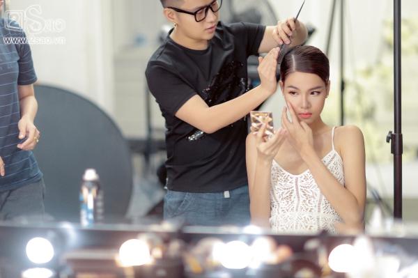 Cặp đôi khá hạnh phúc trong những shoot hình hậu trường. Mạc Hồng Quân