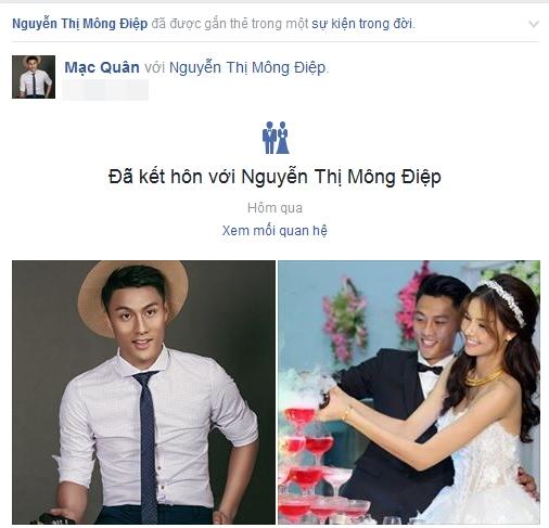Sau khi Kỳ Hân bày tỏ cảm xúc khi xa chồng, Mạc Hồng Quân đã cập nhập trạng thái mới đã kết hôn của mình với vợ.