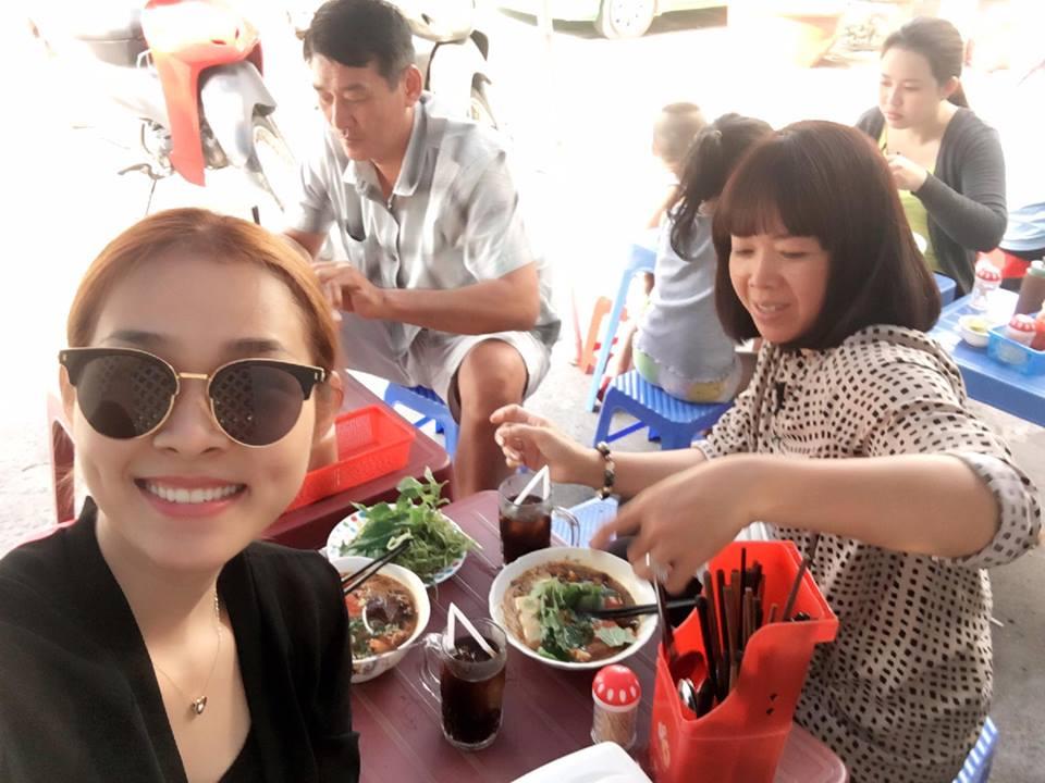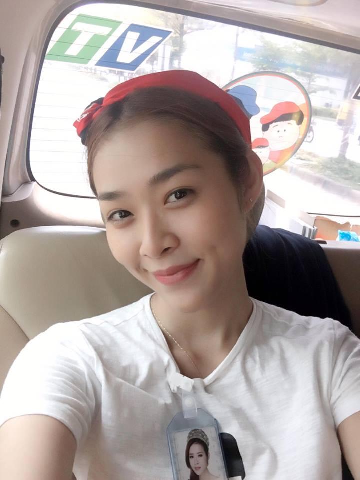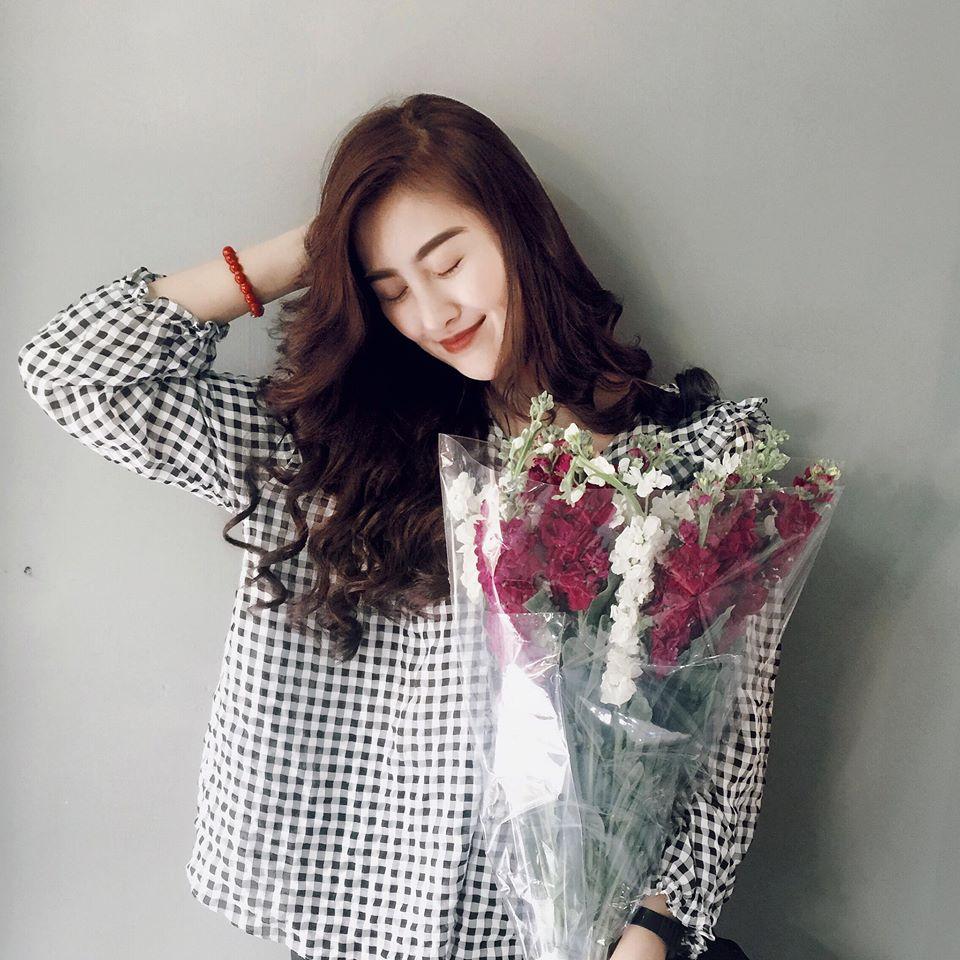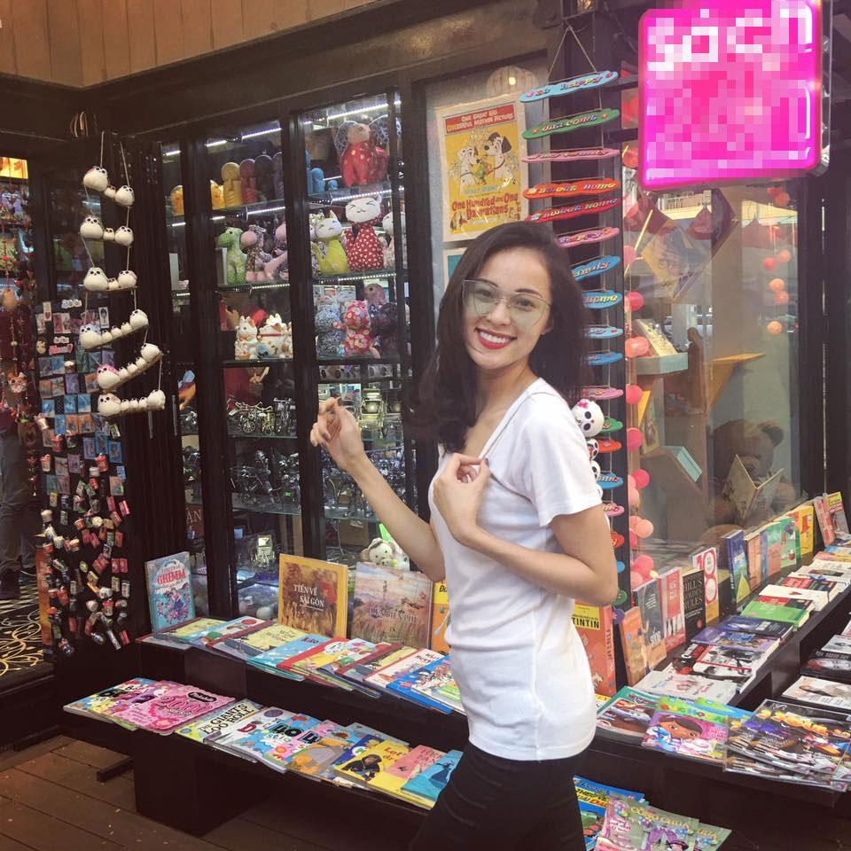 Hạ Vi xuống phố đơn giản với áo phông trắng. Trang phục này càng để lộ