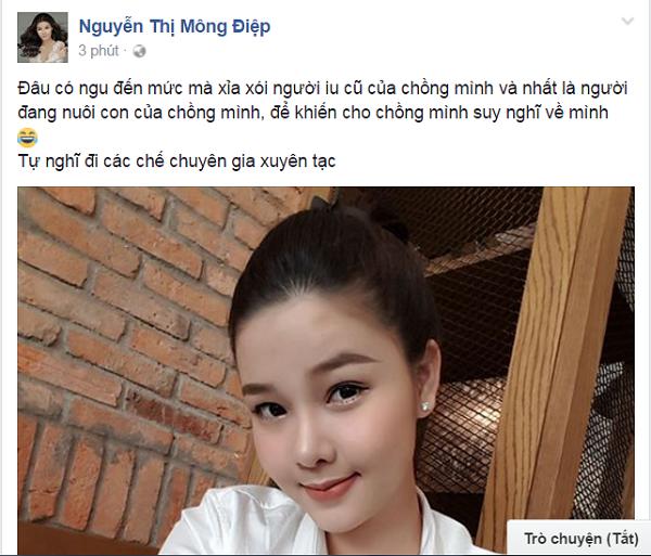 "Đâu có ngu đến mức mà xỉa xói người yêu cũ của chồng mình, và nhất là người đang nuôi con của chồng mình, để khiến cho chồng mình suy nghĩ về mình. Tự nghĩ đi các chế chuyên gia xuyên tạc", Kỳ Hân khẳng định.
