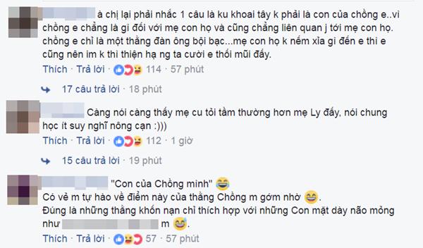 "À chị lại phải nhắc một câu là Khoai Tây không phải là con của chồng em, vì chồng em chẳng là gì đối với mẹ con họ, và cũng chẳng liên quan gì tới mẹ con họ. Chồng em chỉ là một người đàn ông bội bạc. Mẹ con họ không đếm xỉa gì đến em thì em cũng nên im, không thì thiện hạ người ta cười em đấy", một khán giả nhắn nhủ Kỳ Hân.