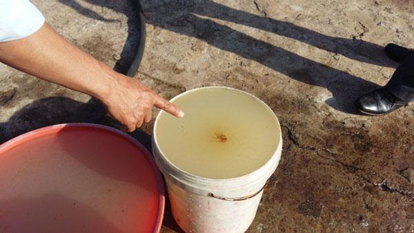 Nước nổi váng màu vàng và sủi bọt khi bơm lên khỏi giếng.