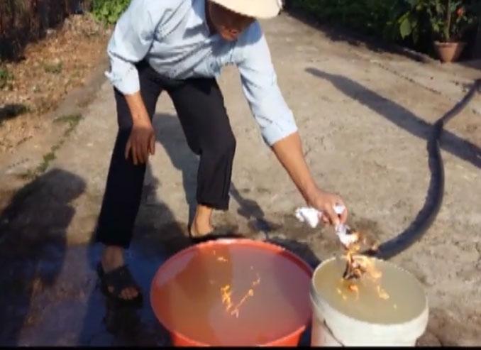 Nước bốc cháy dữ dội khi châm lửa đốt