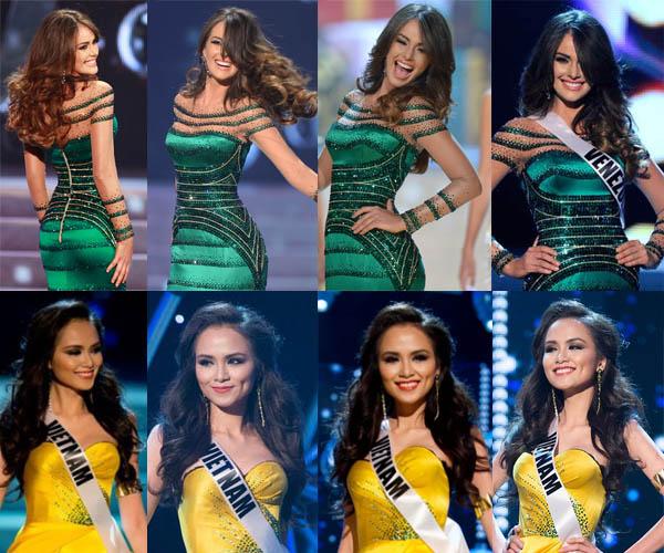 Ngược lại, đó lại là sở trường của các người đẹp đến từ các "cường quốc hoa hậu". Điển hình là Dayana Mendoza - Hoa hậu Hoàn vũ 2008. Ngay cả khi trình diễn da hội, Dayana vẫn khiến cho mọi ánh mắt phải đồ dồn về phía mình vì ánh mắt bờ môi, chuyển động hông - vai quá đỗi tuyệt vời, chưa kể đến pha tung váy được xem là "kinh kiển".