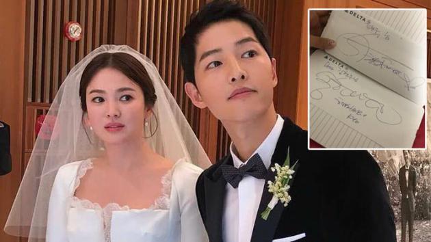 Nữ tiếp viên hạnh phúc chia sẻ hình ảnh chữ kí Song Joong Ki và Song Hye Kyo