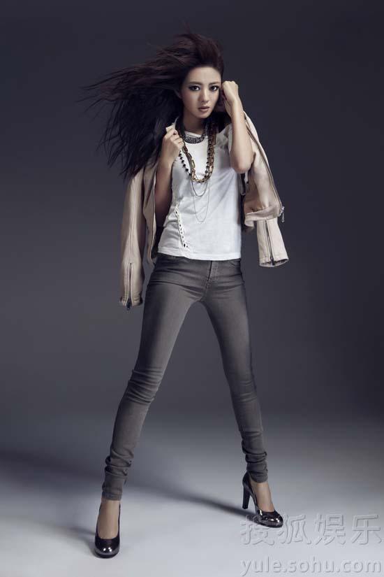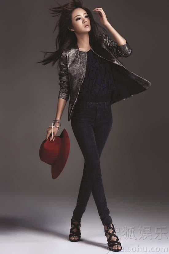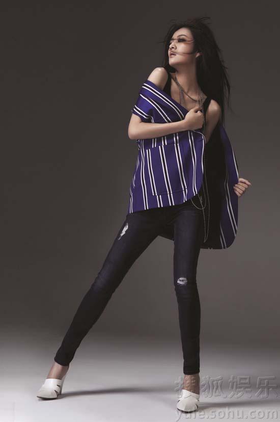 Cô khéo léo khoe đôi chân thon với jean tối màu.