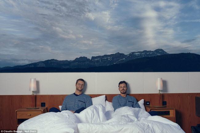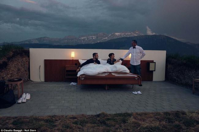 Khách sạn chỉ có duy nhất một chiếc giường đôi, bàn đầu giường và đèn nằm trên đỉnh ngọn núi Gobsi thuộc dãy Alps.
