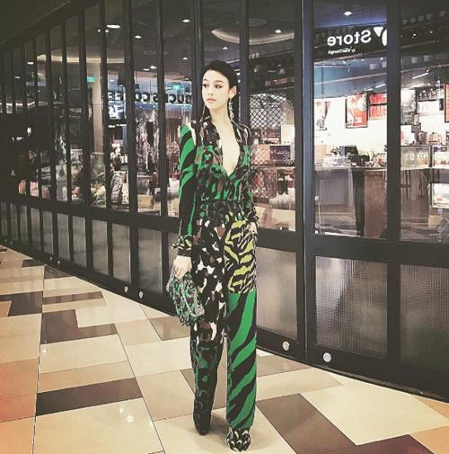 Trong một shoot hình khác cô diện cả set của thương hiệu Versace