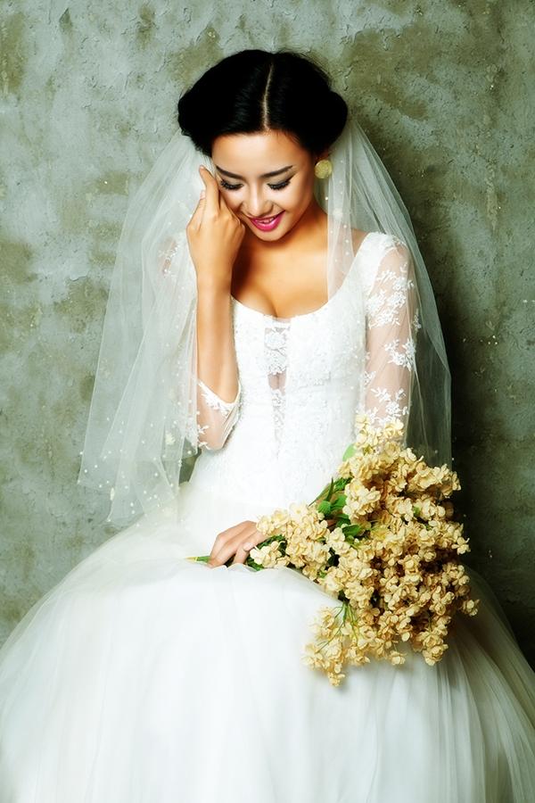 Mặc dù đã từng trình diễn rất nhiều lần trang phục cưới trên sàn diễn, nhưng nữ người mẫu cho biết khi thực hiện bộ ảnh cô luôn có cảm giác lần đầu tiên được mặc áo cưới, tất cả những cung bậc cảm xúc rất khó tả.