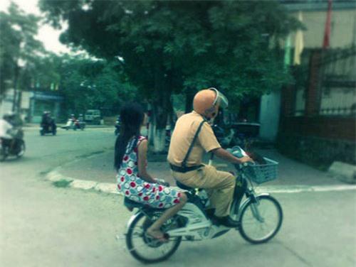Sau clip CSCĐ hì hục đạp xe chở một nữ sinh, cư dân mạng lại được dịp xôn xao với bức ảnh một CSGT chở thiếu nữ không đội mũ bảo hiểm.