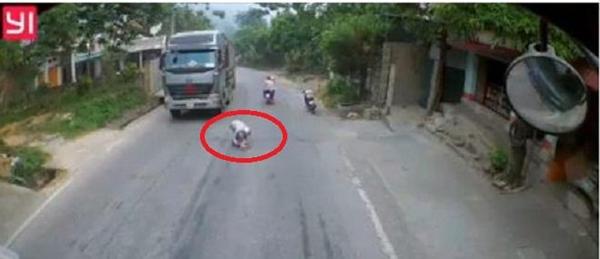 Sáng 9/6, đoạn clip ghi cảnh một bé trai chừng 2 tuổi lật đật chạy ra giữa đường quốc lộ ngồi chơi làm 2 bác tài xế xe tải phải phanh gấp để tránh khiến nhiều người giật mình hốt hoảng.