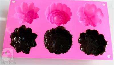 ![]() | ![]() Đun chảy 100gr chocolate còn lại như bước 2 và 3 sau đó phủ lên bề mặt khuôn làm đáy bánh. |