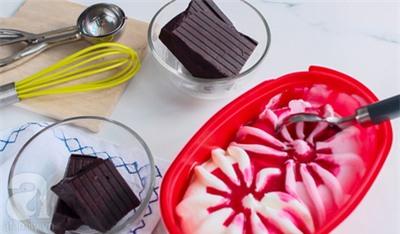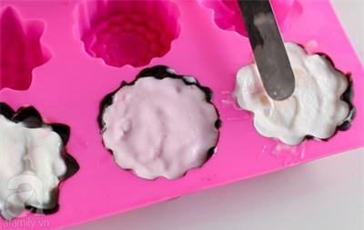 ![]() | ![]() Cho kem vào 1/3 khuôn. Cho vào ngăn đông 15 phút. |