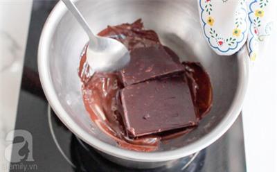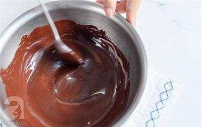 ![]() | ![]() Sau khi chocolate tan hết nhắc âu xuống và khuấy cho chocolate mượt hơn trong 5 phút. |