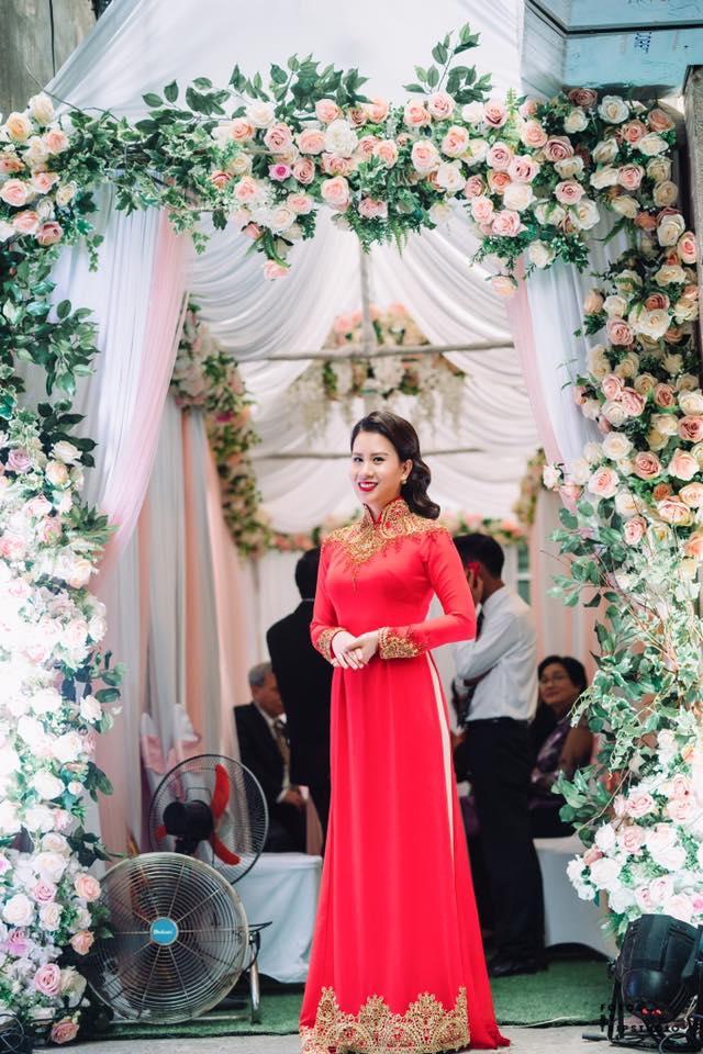 Ngọc Hương rạng rỡ với áo dài truyền thống trong ngày trọng đại