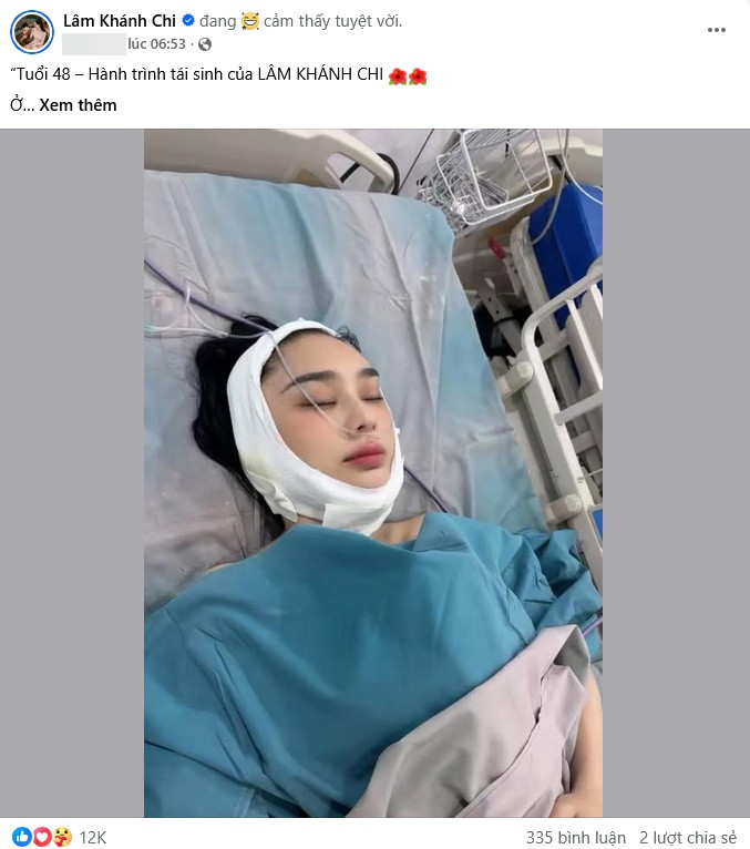 Bài đăng lập tức hút 12 nghìn lượt thích và hàng loạt bình luận. Nhiều người không khỏi lo lắng cho sức khỏe của Lâm Khánh Chi khi chỉ trong một thời gian ngắn người đẹp chuyển giới liên tục thực hiện những ca "dao kéo" đau đớn. Cách đây 1 ngày, nữ ca sĩ cho biết: "Một lần nữa tiếp tục trùng tu nhan sắc để trở thành phiên bản hoàn hảo của chính mình."