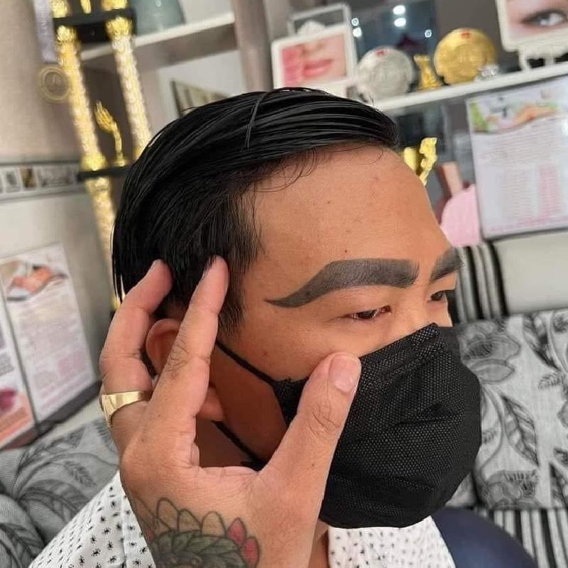 Đáp ứng yêu cầu của khách, cơ sở này đã làm ra bộ lông mày ai nhìn cũng phải khóc thét bởi độ uốn lượn lại vừa dày vừa to như chiếm cả 1/3 diện tích chiếc trán.