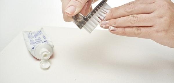 Hãy tận dụng ngay lọ kem đánh răng có sẵn trong nhà. Mỗi sáng và tối khi đánh răng bạn chỉ cần dùng bàn chải lấy chút kem chà nhẹ nhàng lên các móng tay sau đó rửa sạch bằng nước ấm. Cách làm này vừa đơn giản lại nhanh chóng, hiệu quả.