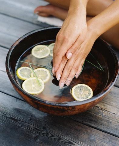 Hoặc bạn hòa nước cốt chanh với nước nhúng tay trực tiếp trong vòng 5 phút. Sau đó rửa sạch bằng nước ấm. Áp dụng 3 lần mỗi tuần để móng trở nên hồng hào, trắng đẹp hơn.