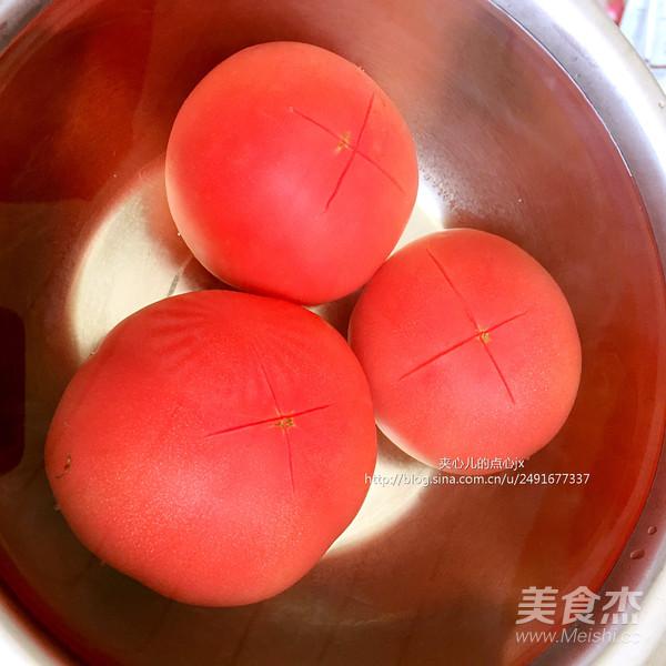 Bước 2: Cà chua khứa chéo hai đường ở phần đuôi, cho vào nồi