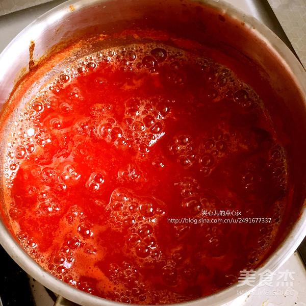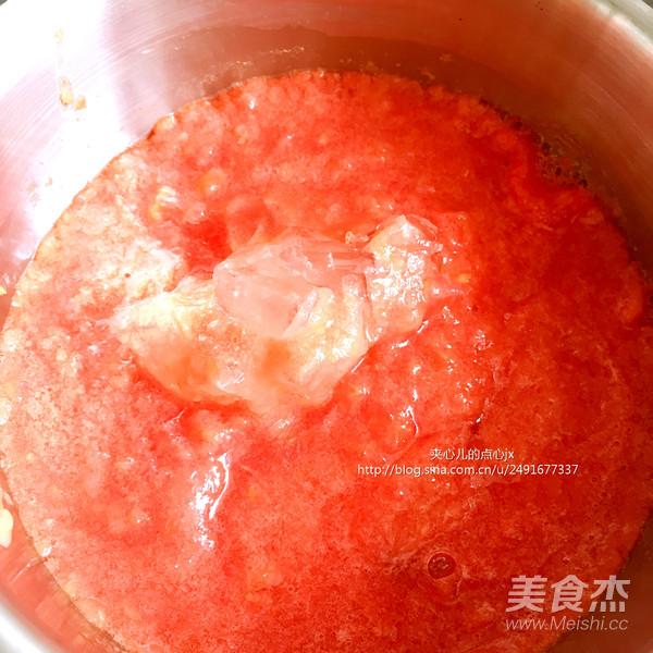 Bước 6: Cho đường phèn vào, đun lửa nhỏ cho đến khi hỗn hợp đặc sánh lại, có màu đỏ đậm.