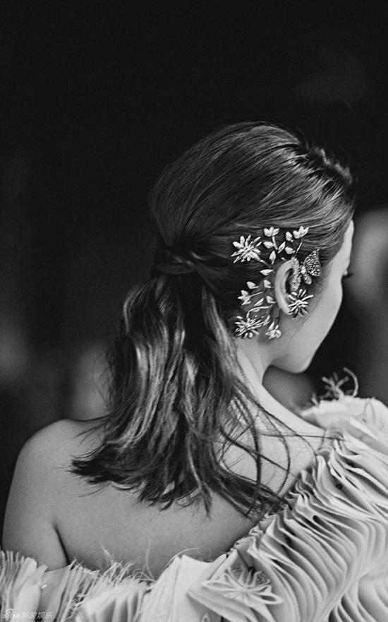 Trang sức cài tóc của nữ diễn viên cũng được thiết kế vô cùng tỉ mỉ, làm tôn lên vẻ đẹp sang trọng và quyến rũ.