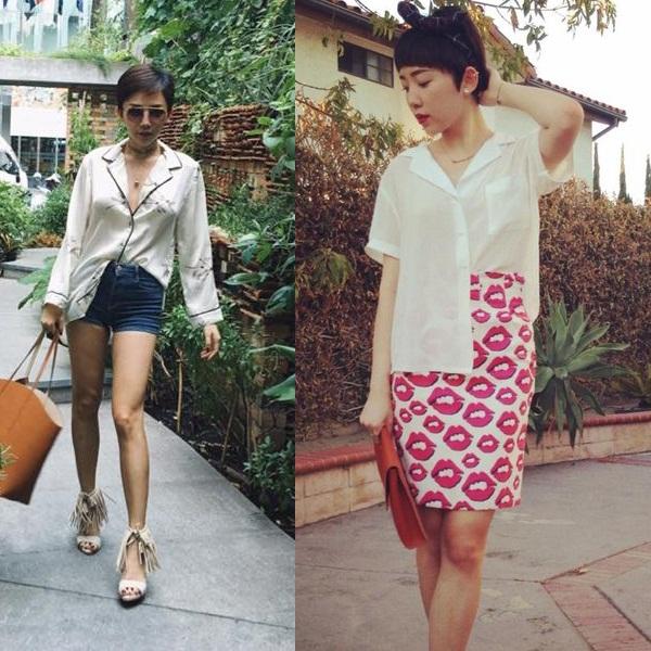 Sơ mi Pijama hay sơ mi trắng... thì đều có thể "vạt giữ, vạt buông" để tạo ra nét cá tính