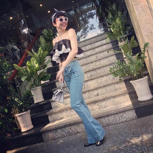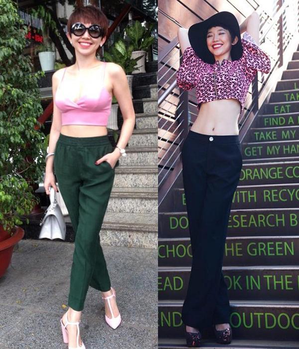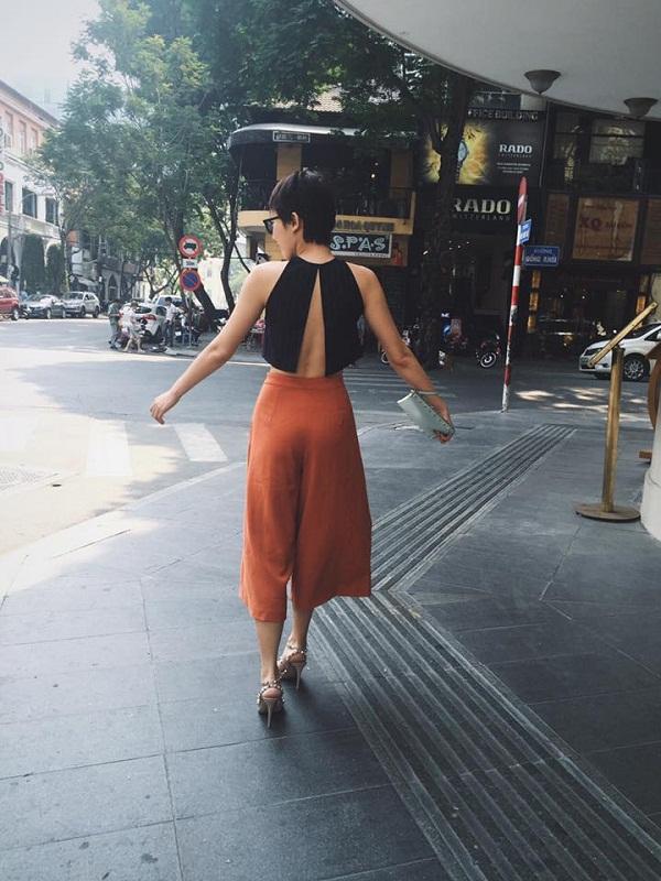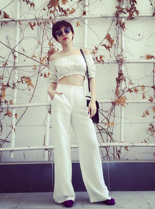 Hoặc cũng có thể khoe vẻ gợi cảm với crop-top và quần dài đơn giản.