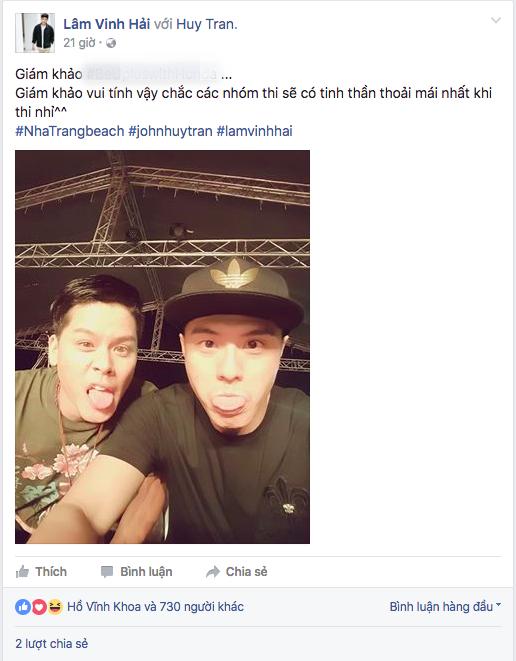 Mới đây, trên trang cá nhân của mình biên đạo múa Jonh Huy Trần chia sẻ một bức ảnh chụp chung với Lâm Vinh Hải kèm theo dòng trạng thái: “Cuối cùng chúng tôi cũng tìm được chính mình” khiến cho người hâm mộ hoài nghi về quan hệ tình cảm của cặp đôi này.
