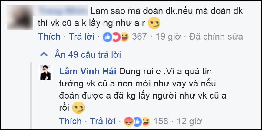 Ngay sau khi đọc được những dòng tự sự do dancer họ Lâm viết ra, một khán giả bất ngờ quay ra chỉ trích anh: "Làm sao mà đoán được. Nếu mà đoán được thì vợ cũ đã không lấy người như anh rồi". Khá đanh thép, Lâm Vinh Hải đáp trả: "Vì anh quá tin tưởng vợ cũ nên mới như vậy. Nếu đoán được anh đã không lấy người như vợ cũ anh rồi".