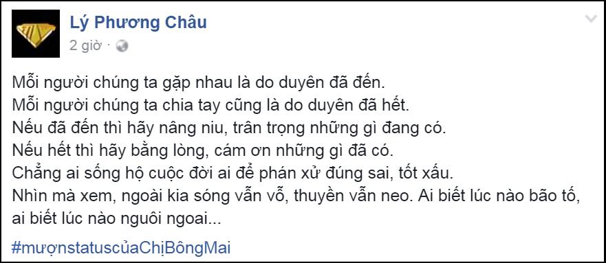 Trên trang cá nhân, Lý Phương Châu cũng mượn một lời khuyên răn trên mạng xã hội hàm ý thể hiện nỗi lòng mình trước phát ngôn của chồng cũ.