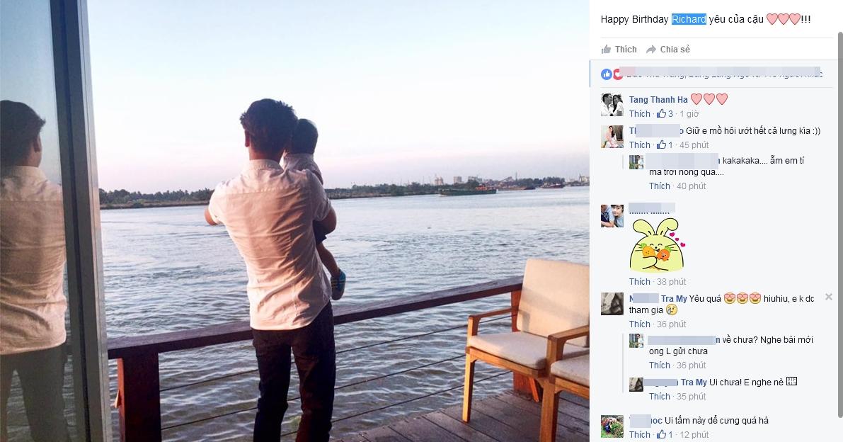 Đúng ngày đặc biệt 17/04 - sinh nhật con trai của Tăng Thanh Hà, mới đây một người bạn thân của cô - Quang Tuyến đã đăng tải hình ảnh bế một bé trai kháu khỉnh cùng lời chúc sinh nhật gửi tới cậu bé: Happy Birthday Richard yêu của cậu. Lời chúc mừng sinh nhật dành cho cậu bé của Quang Tuyến nhận được vô số những lời chúc mừng của mọi người, trong đó có Tăng Thanh Hà và người chị em thân thiết của cô là Trà My idol.