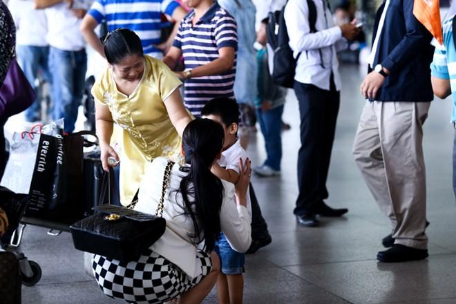 Vừa ra khỏi khu vực an ninh, người đầu tiên Lệ Quyên nhìn thấy là cậu con trai cưng của mình. Kể từ khi bé Kỳ Anh chào đời, nữ ca sĩ đã kể với người hâm mộ và giới truyền thông nhiều điều thú vị về chuyện làm mẹ, khi vượt cạn... Nhưng cô lại hiếm khi khoe ảnh con trên mặt báo.