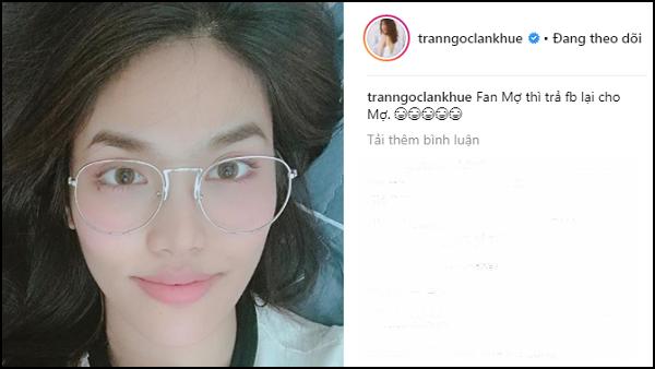 Trên Instagram cá nhân, Lan Khuê đã có động thái kêu gọi hacker trả Facebook: "Fan Mợ thì trả Facebook lại cho Mợ".