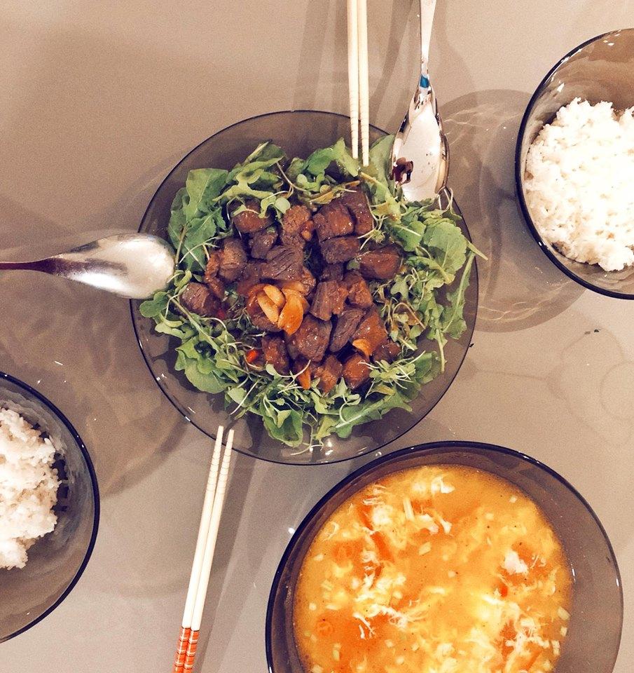 Trên trang cá nhân, nữ diễn viên Mẹ chồng thường xuyên chia sẻ thành quả vào bếp. Theo đó, những bữa cơm dẻo canh ngọt với đủ các món ăn từ Á sang Âu đều được mỹ nhân họ Trần mang ra "mời" mọi người.