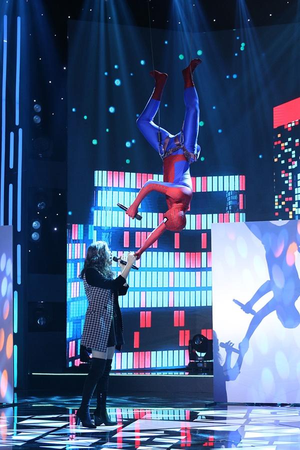 Không chỉ vậy, anh chàng còn treo ngược người và hát, tiết mục nhận được số điểm 29,5