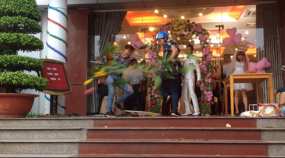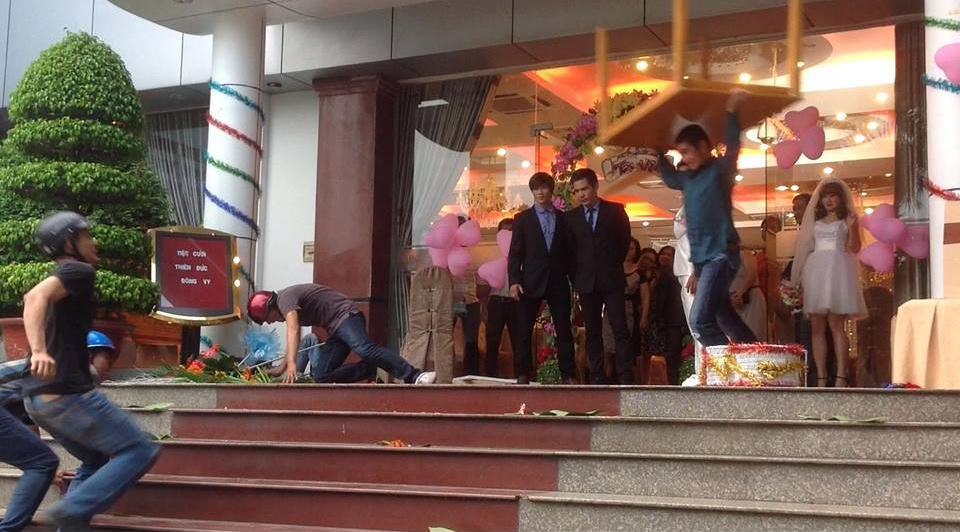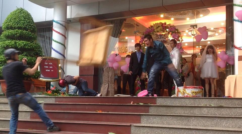 Mở đầu là màn đánh nhau trước đại sảnh của tiệc cưới