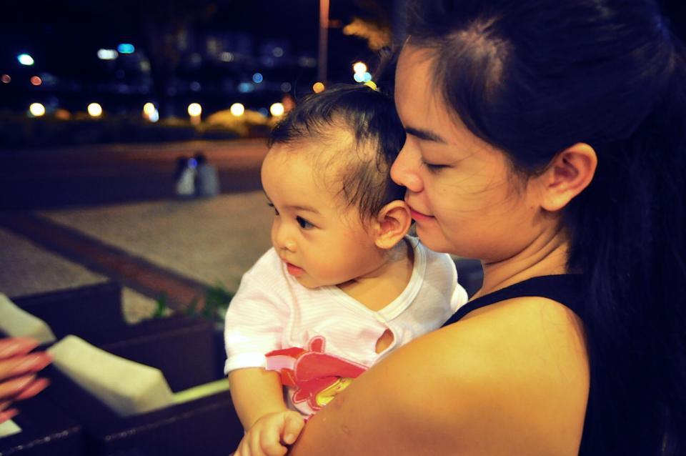 Phạm Quỳnh Anh hạnh phúc bên con gái.