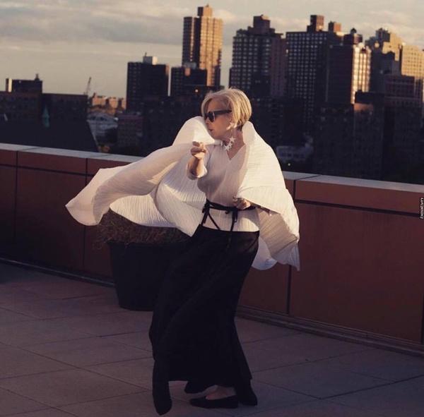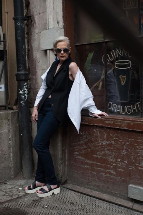 Bà Lyn Slater sinh năm 1953, là giáo sư đại học chuyên ngành thời trang tại Mỹ. Ở tuổi 64, bà khiến cả làng thời trang thế giới phải xuýt xoa trước gu thẩm mỹ không tuổi. Với sự kết hợp hài hòa giữa 2 màu chủ đạo đen, trắng cùng mái tóc gọn gàng - Lyn Slater tạo cho bản thân một nét đẹp trẻ trung, quý phái, khác hẳn với những đồng nghiệp cùng tuổi.