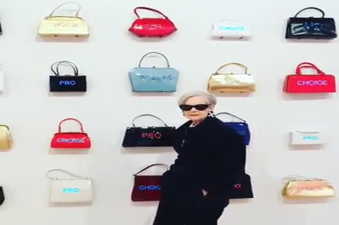Bà Lyn Slater tạo dáng bên tủ túi xách khiến giới yêu thời trang ngất ngây.