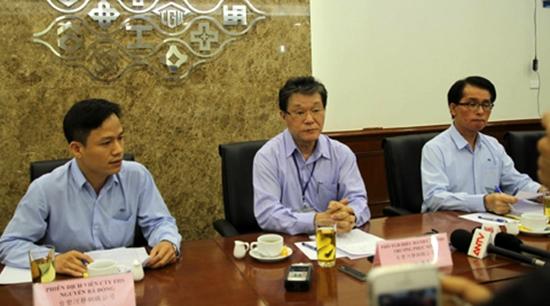 Tập thể lãnh đạo công ty FHS Hà Tĩnh đã có mặt để trả lời chất vấn của báo chí. Ông Trương Phục Ninh - Phó Tổng giám đốc điều hành công ty FHS Hà Tĩnh chủ trì cuộc họp báo.