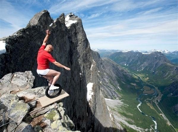 Đi xe một bánh ở độ cao 1.000 ft (305 mét) ở Na Uy.