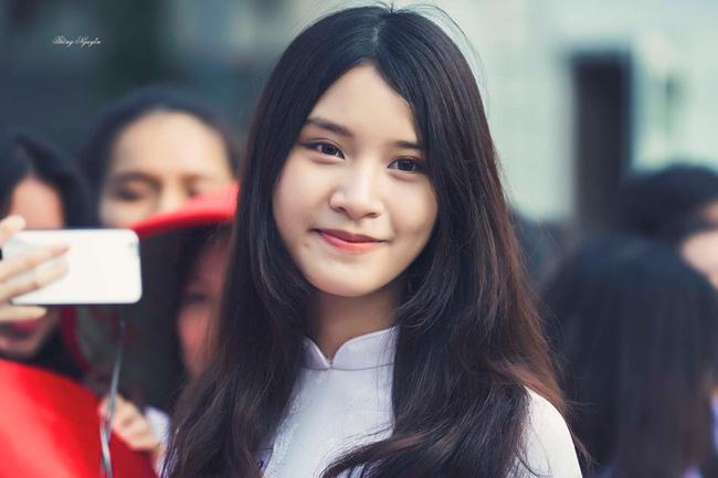 Những hình ảnh về cô bạn này đã được chụp lại từ màn đồng diễn áo dài nằm trong Lễ hội Áo dài lần 4 năm 2017 tại phố đi bộ Nguyễn Huệ vừa qua. Cô bạn là 1 trong số1000 nữ sinh của trường THPT Trưng Vương (TP.HCM) tham gia màn đồng diễn này.